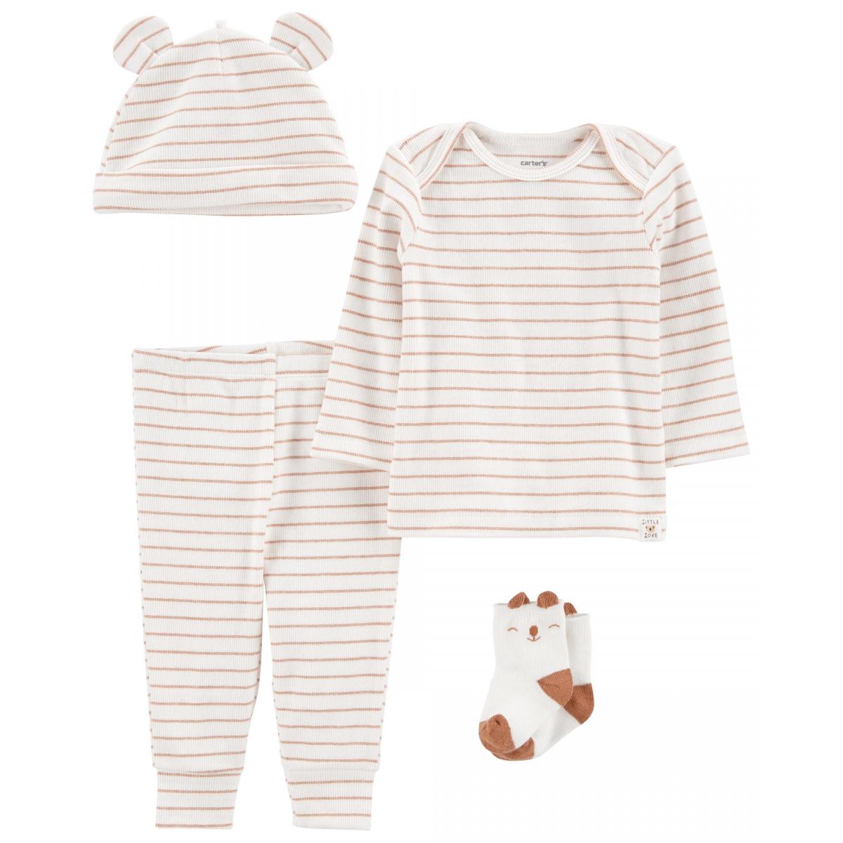 Чудовий комплект одягу для новонароджених, що складається з шапочки, шкарпеток, кофтинки та штанців, 100% бавовна-трикотаж відмінної якості , комплект стане відмінним подарунком та незамінною покупкою до народження дитини