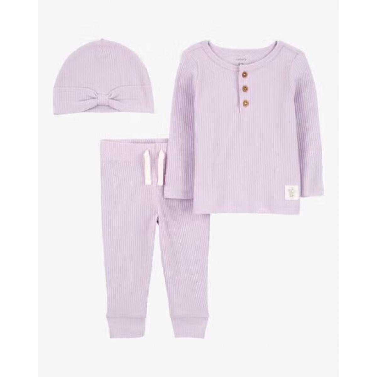 М'якесенький костюм для дівчинки, виготовлений з приємного на дотик бавовняного трикотажу, кофтинка, шапочка та штанці