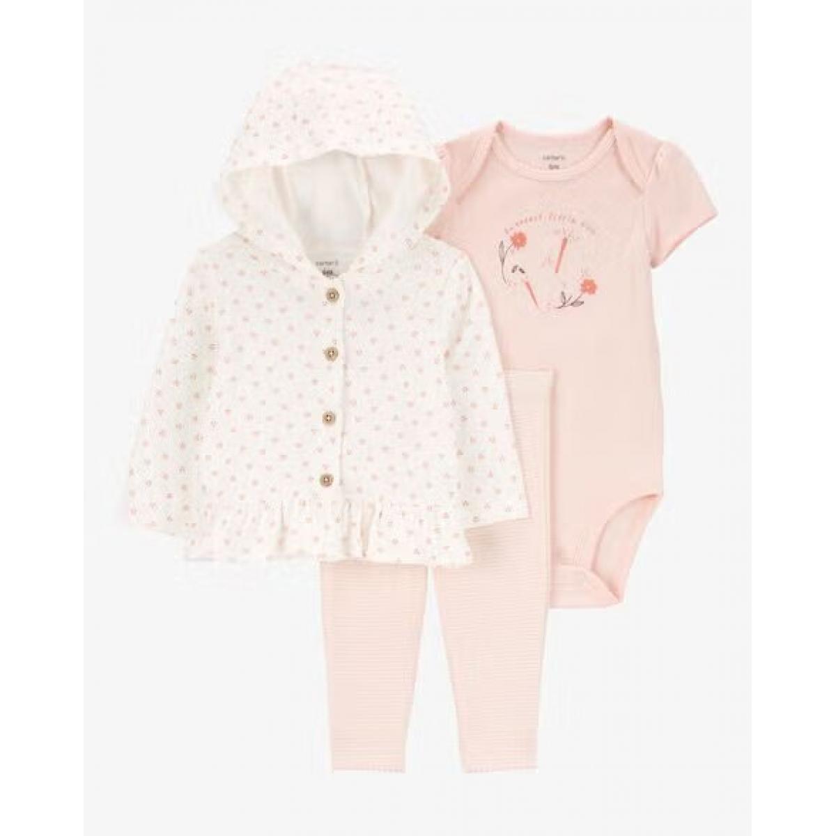 М'якесенький трикотажний костюм для дівчинки, кофточка з капюшоном, боді та штанці