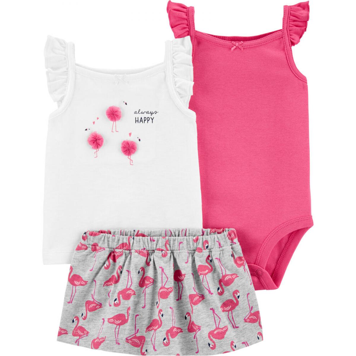 Чудовий літній костюм, зручний, легкий і дихаючий, трикотажний бодік, футболочка та спідничка-трусики, чудово поєднуються як між собою, так і з іншими моделями літнього гардеробу, Ваша крихта щодня виглядатиме по-новому!