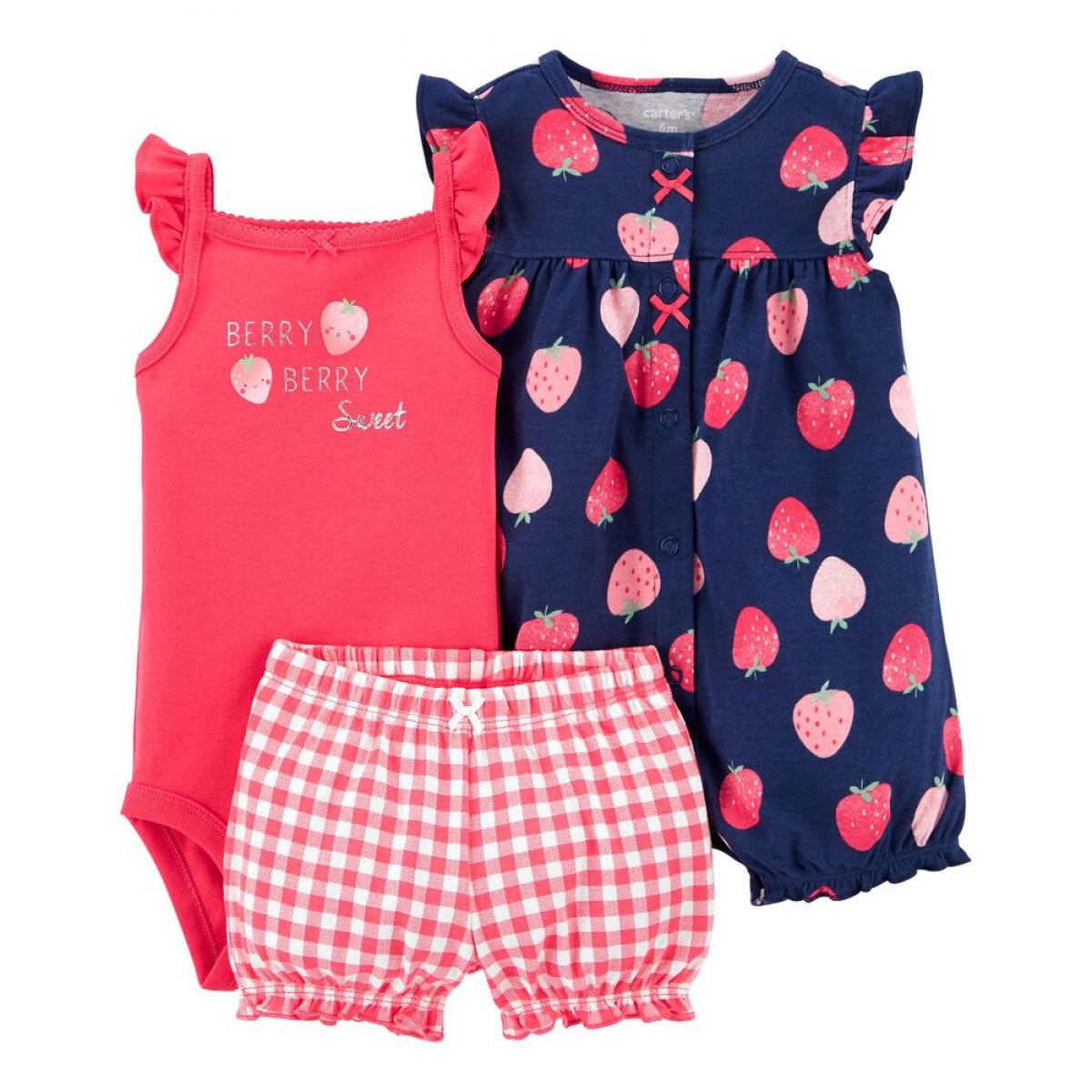 Чарівний комплект одягу для дівчинки складається з бодіка, пісочника та шортиків, чудовий варіант на кожен літній день.