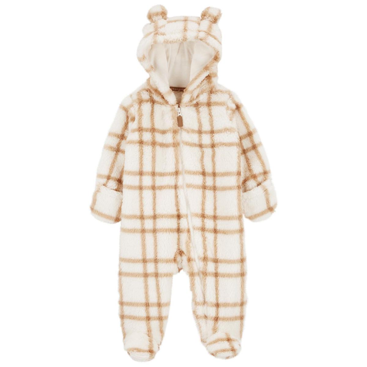 М'який, теплий, зручний плюшевий комбінезон з капюшоном зігріє Вашого малюка в прохолодну погоду,  капюшон  на трикотажній підкладці  прикрашений чарівними вушками, зручна бічна блискавка до самої п'яточки забезпечить батькам легкість в експлуатації