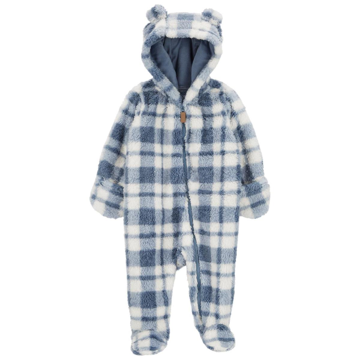 М'який, теплий, зручний плюшевий комбінезон з капюшоном зігріє Вашого малюка в прохолодну погоду,  капюшон  на трикотажній підкладці  прикрашений чарівними вушками, зручна бічна блискавка до самої п'яточки забезпечить батькам легкість в експлуатації